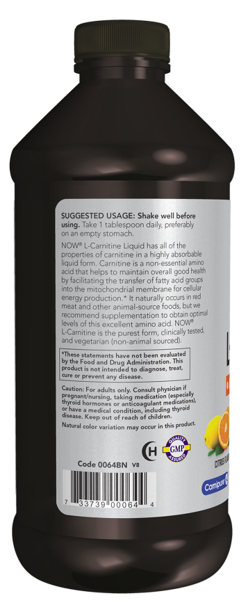 NOW® L-カルニチン液は、吸収性の高い液体でありながら、カルニチンの特性を備えています。