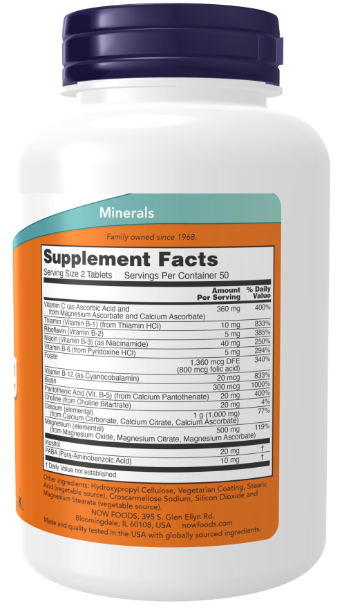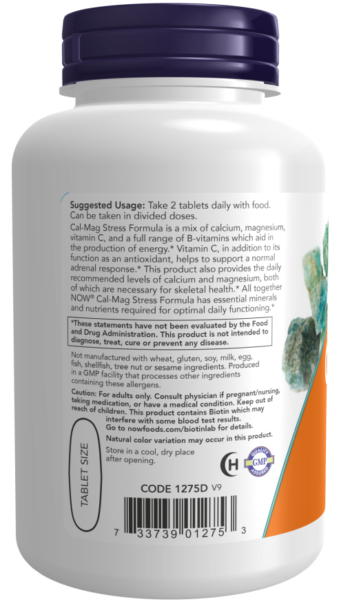NOW® Cal-Mag Stress Formulaは、カルシウム、マグネシウム、ビタミンC、そしてエネルギー生成を助けるビタミンB群をバランスよく配合したサプリメントです。